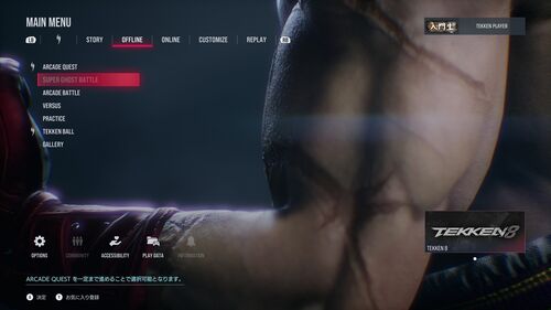 鉄拳8のスーパーゴーストバトルは最初は遊べない。メインメニューのオフラインに項目があるにはあるけど選べない。今回はこのモードの解禁手順を書き綴る。 最初はスーパーゴーストバトルは選ぶことができない 「アーケードクエストを一定まで進めることで選…